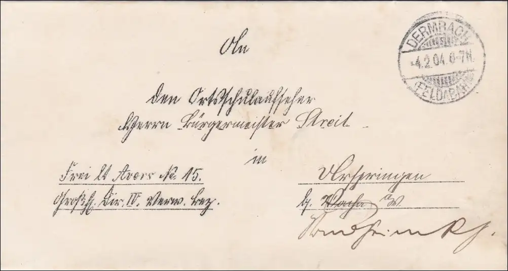 Dermbach/Feldabahn 1904 an Bürgermeister Streit