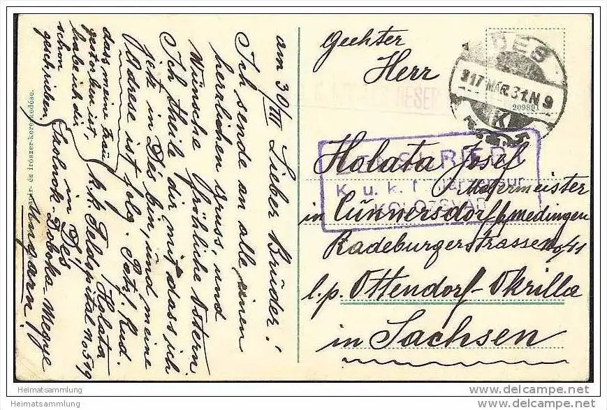 Des - A varos latkepe - Feldpost - Eckknick oben rechts (G16939) gel. 1917