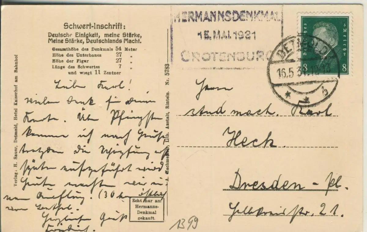 Detmold v. 1921 Das Hermannsdenkmal (AK1399)