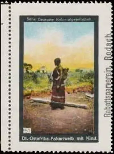 Askariweib mit Kind, Serie: Deutsche Kolonialgesellschaft, Berlin, Größe/Zustand: 5x7 , guter Zustand, Original alte Reklamemarke die seinerzeit für die Werbung benutzt wurde