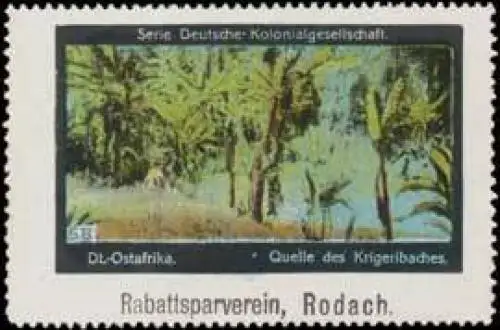 Quelle des Krigeribaches. Serie: Deutsche Kolonialgesellschaft, Berlin, Größe/Zustand: 5x7 , guter Zustand, Original alte Reklamemarke die seinerzeit für die Werbung benutzt wurde