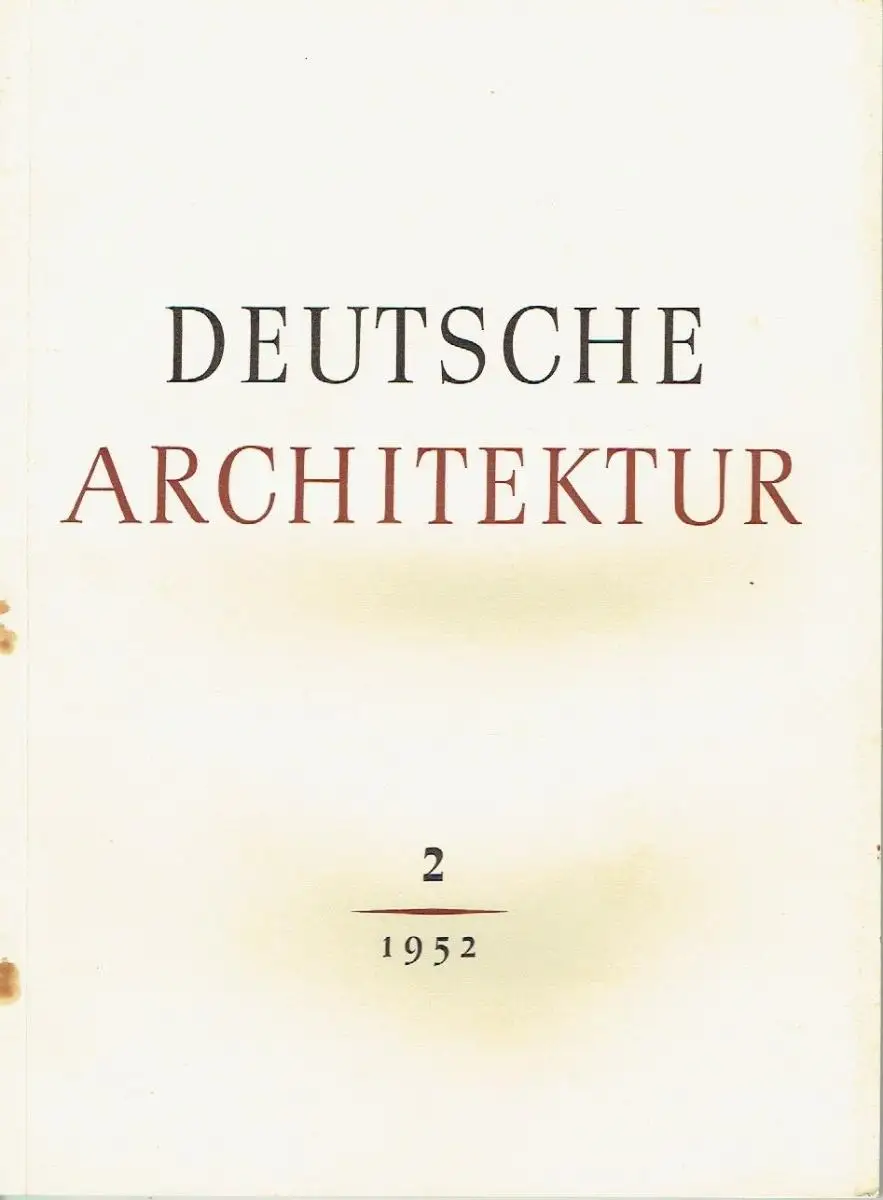 sehr guter Zustand, geringe Gebrauchs- und Alterungsspuren: Klammerrost - sonst sauber und ordentlich, Otto Grotewohl: Aus der Rede „Die Eroberung der Kultur beginnt" - Ein wichtiges Ereignis für die Entwicklung der deutschen Architektur - Dr.-Ing. Hütter: Professor Dr.-Ing: Kurt Beyer - Professor Kurt Magritz: Die Tragödie der westdeutschen Architektur (10 Seiten) - Professor Hanns Hopp: Werkstattbericht zum Projekt Stalinallee (Berlin) (8 Seiten) - Ernst Hoffmann: Ideologische Probleme der Architektur - Neues von der sowjetischen Architektur (8 Seiten) - Günther Juhre: Zur Ausbildung unseres Architektennachwuchses - Professor Dr. Kurt Liebknecht: Zur Frage der Fensterformen - Chronik, kartoniert, ca. 24,2 x 32,5, 48 Seiten mit zahlreichen Bildern