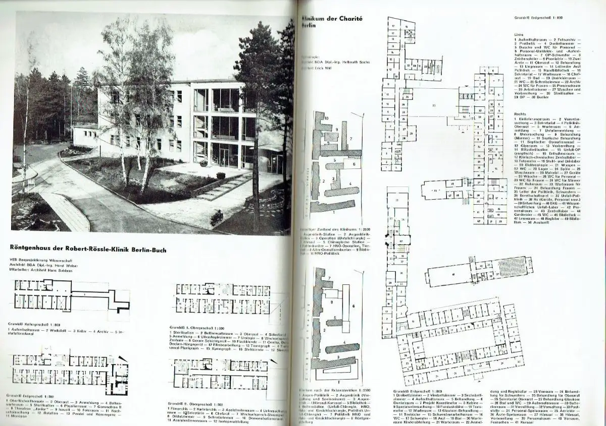 sehr guter Zustand, geringe Gebrauchs- und Alterungsspuren: kleine Blessuren - Seiten unten teils etwas eselsohrig, alle Artikel ohne Angabe der (Länge) sind 1-3 Seiten lang - Professor Dr.-Ing. Kurt Liebknecht: Die nächsten Aufgaben im Krankenhausbau der Deutschen Demokratischen Republik (13 Seiten) - Architekt BDA Dipl.-Ing. Hellmuth Sachs, Architekt Erich Will, Dr. med. Herbert Erler: Technologische Vorplanung für das Kreiskrankenhaus Bitterfeld - Architekt BDA Mersiowski, Architekt BDA Dipl.-Ing. Heino Seebauer: Kreiskrankenhaus Großenhain - Dipl.-Ing. Steffen, Dipl.-Ing. Glomb, Dipl.-Ing. Rautengarten, Bauingenieur Herele, Ingenieur Naprawnik, Ingenieur Bürger, Ingenieur Thoms, Dipl.-Ing. Herold, Gartenarchitekt Apelt, Technologie: Dipl.-Ing. Hellmuth Sachs und Dr. med. Herbert Erler: Vorplanung für das Bezirkskrankenhaus Schwerin - Dipl.-Ing. Steffen, Dipl.-Ing. Schröder, Dipl.-Ing. Rautengarten, Bauingenieur Herele, Ingenieur Eisenach, Ingenieur Uhlig, Ingenieur Weiß, Dipl.-Ing. Herold, Gartenarchitekt Apelt: Rekonstruktion und Erweiterung des Kreiskrankenhauses Hagenow - Architekt BDA Gerhard Wachholz, Architekt BDA Heribert Scholtysik, Technologie: Dipl.-Ing. Hellmuth Sachs: Erweiterungsbau des Kreiskrankenhauses Königs Wusterhausen - Architekt Helmut Ulbricht: Kreiskrankenhaus Malchin - Dipl.-Ing. Roland Jaenisch: Das neue Operationsgebäude für die Robert-Rössle-Klinik Berlin-Buch - Architekt BDA Dipl.-Ing. Horst Weiser: Röntgenhaus der Robert-Rössle-Klinik Berlin-Buch - Architekt BDA Dipl.-Ing. Hellmuth Sachs, Architekt Erich Will: Klinikum der Charité Berlin - Architekt BDA Dipl.-Ing. Hellmuth Sachs, Dipl.-Ing. Roland Jaenisch: Die Frauenklinik der Ernst-Moritz-Arndt-Universität Greifswald - Architekt BDA Dipl.-Ing. Heilmuth Sachs, Dipl.-Ing. Roland Jaenisch: Einige Gedanken zum gegenwärtigen Stand im Krankenhausbau (8 Seiten) - Architekt BDA Dipl.-Ing. Hellmuth Sachs: Technologie für eine radiologische Klinik der medizinischen Akademie Magdeburg - Dr. med. Herbert Erler: Grundsätze füe die Planung eines Netzes der Stationären Einrichtungen - Architekt BDA Franz Jahn: Probleme der Typisierung von Gesundheitszentren - Dipl.-Ing. Heino Seebauer: Zweibettzimmer oder Dreibettzimmer? - Elektroingenieur Werner Heyne: Elektrotechnik im Krankenhausbau - Hermann Voigt: Die Pflegeorganisation nach dem „Progressive-Patient-Care"-Programm - Dipl.-Wirtschaftler Walter Schwarz: Die Zentralisierung von Versorgungseinrichtungen der Krankenhäuser - Georg Bick: Die Krankenhausverwaltung - Dr. med. Hans-Georg Bauers: Einige Bemerkungen zum Krankenhausbau in warmen Ländern - Dr. Eckhard Mothes: Sonnenstrand Nessebar - Bauingenieur Horst Bandmann: Elemente der Typenreihe IW 61/P 1 - Dr. med. Kurt Biener: Zur Standorthygiene von Erziehungsgebäuden - Karl-August Prüss: Zum 100. Geburtstag des Baumeisters Emil Prüss, kartoniert, ca. 23 x 31, 60 Seiten mit zahlreichen Bildern