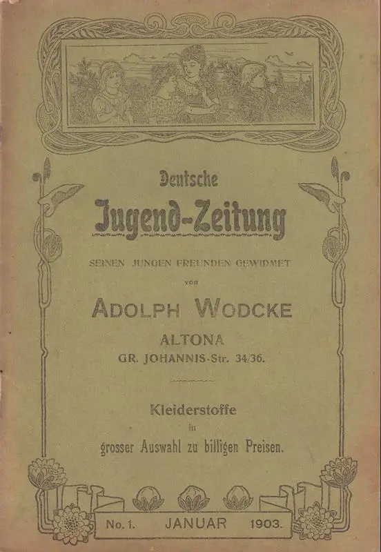 Seitenanzahl: JG. 1903, Hefte 1-6 (Januar - Juni) und JG. 1904, Nrn. 1-12 (Jan.-Dez.). Je 16 S. Mit zahlr., tls. ganzseit. Holzstich-Illustr. Broschuren mit Firmeneindruck v. Textilhaus Adolph Wodcke, Altona, (H. 1,2,4) u. Warenhaus Gebr. Heilbuth, Hamburg, (H. 3) mit