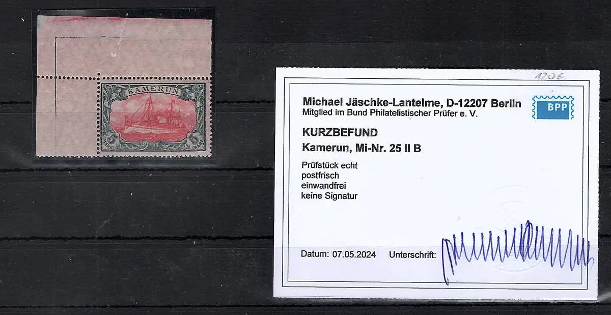Deutsche Kolonie Kamerun Mi.-Nr. 25 II B postfrisch, KB. Jäschke-L.BPP.