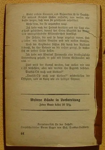 Artikelbeschreibung und Zustand : Siehe Scan. Infos : Serienheft "Helden der Nation" - Im Kampf um Recht und Freiheit - Braune Bibliothek. Heft Nr. 25 : Sansibar. Von Georg Volkmann. Deutsch-Ost-West-Afrika. Kreuzer Moewe vor Sansibar um 1888. Neuer Buchverlag, Dresden 1933. Heft ist noch recht gut erhalten, aber ohne Rueckseite, kein Textverlust