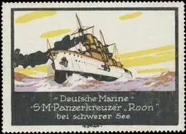 S.M. Panzerkreuzer Roon bei schwerer See, Größe/Zustand: 5x8 , guter Zustand, Original alte Reklamemarke die seinerzeit für die Werbung benutzt wurde