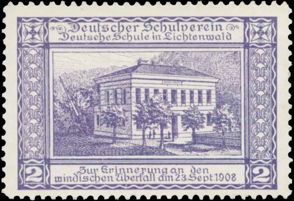 Zur Erinnerung an den windischen Überfall am 20. Sptember 1908. Violett , Größe/Zustand: 3x5 , guter Zustand, Original alte Reklamemarke die seinerzeit für die Werbung benutzt wurde