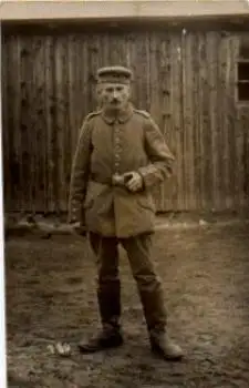 Deutscher Soldat vor Baracke 1. WK. Echtfoto * ca. 1915