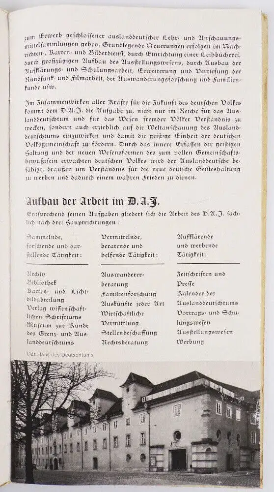 Originale Broschur, Deutsches Ausland Institut Stuttgart, 1934 erschienen, zahlreich illustriert, Format: 12 x 22,5 cm. 24 Seiten. Erhaltung: Einband leicht bestoßen und gestaucht, alles weitere siehe bitte Fotos.