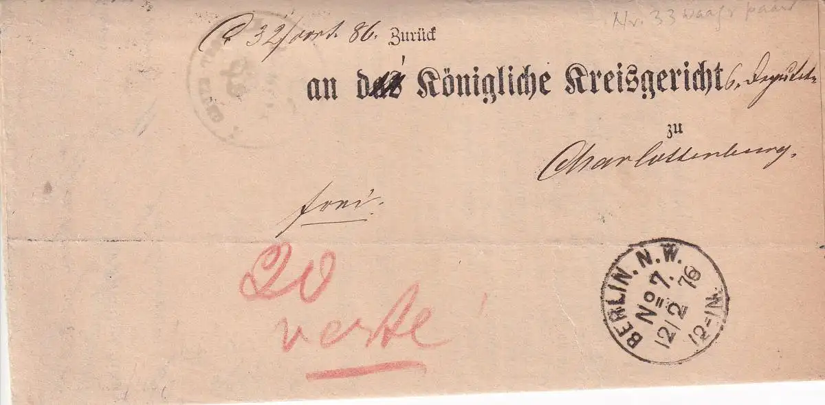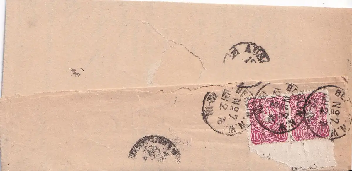 DEUTSCHES REICH 1876 10 PFENNIGE (x2)/ Mi 33 INSINUATION BERLIN-CHARLOTTENBURG