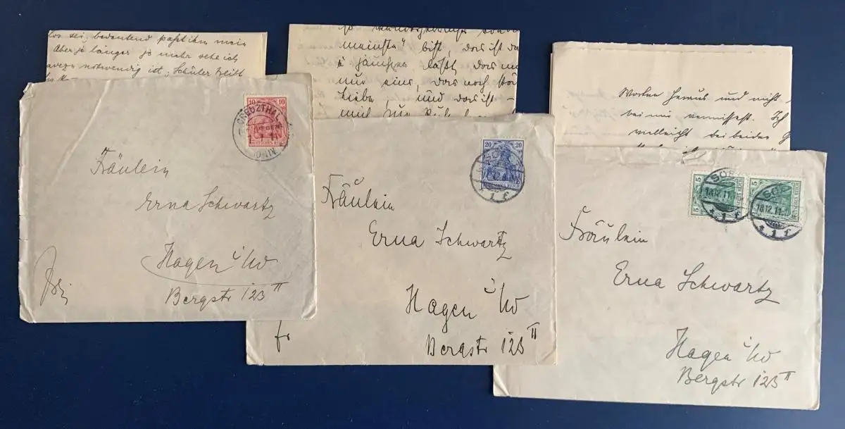 3 Briefe, alle gelaufen im Zeitraum von Juli 1911 bis Februar 1912. Die Briefe sind komplett mit gut lesbarer Korrenspondenz. Der Preis gilt für alle 3 Briefe zusammen!