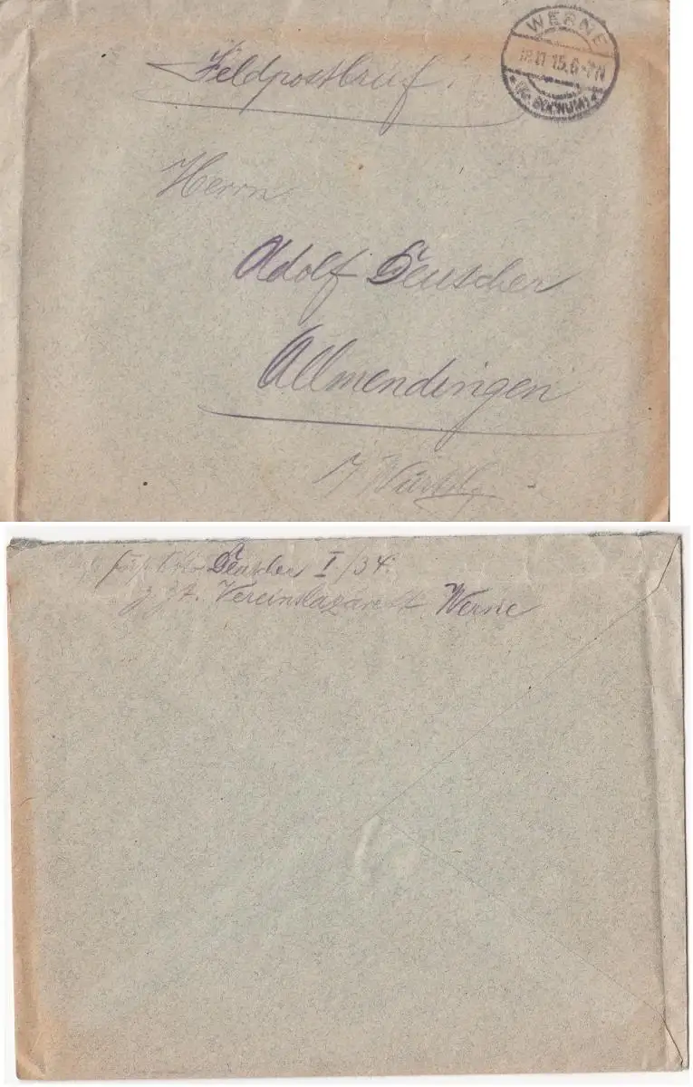 Gelaufen am 18.11.1915 von Werne nach Allmendingen