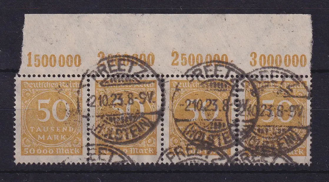 Deutsches Reich 1923 Mi.-Nr. 275 a POR-Viererstreifen O PREETZ