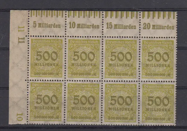 Dt.Reich MiNo. 324A Walzendruck 0´6´0/0´7´0 im Eck-8er-Block **