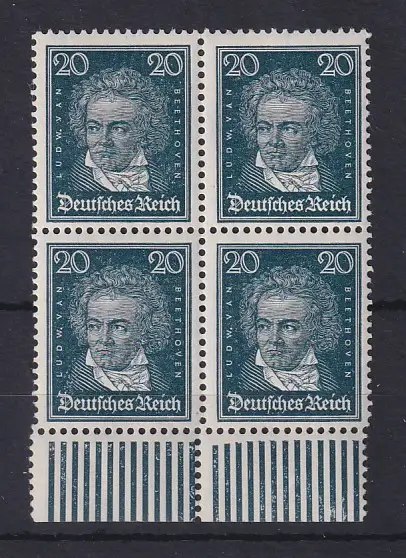 Deutsches Reich 1926 Beethoven 20Pfg. Mi.-Nr. 392 X Unterrand-Viererblock **