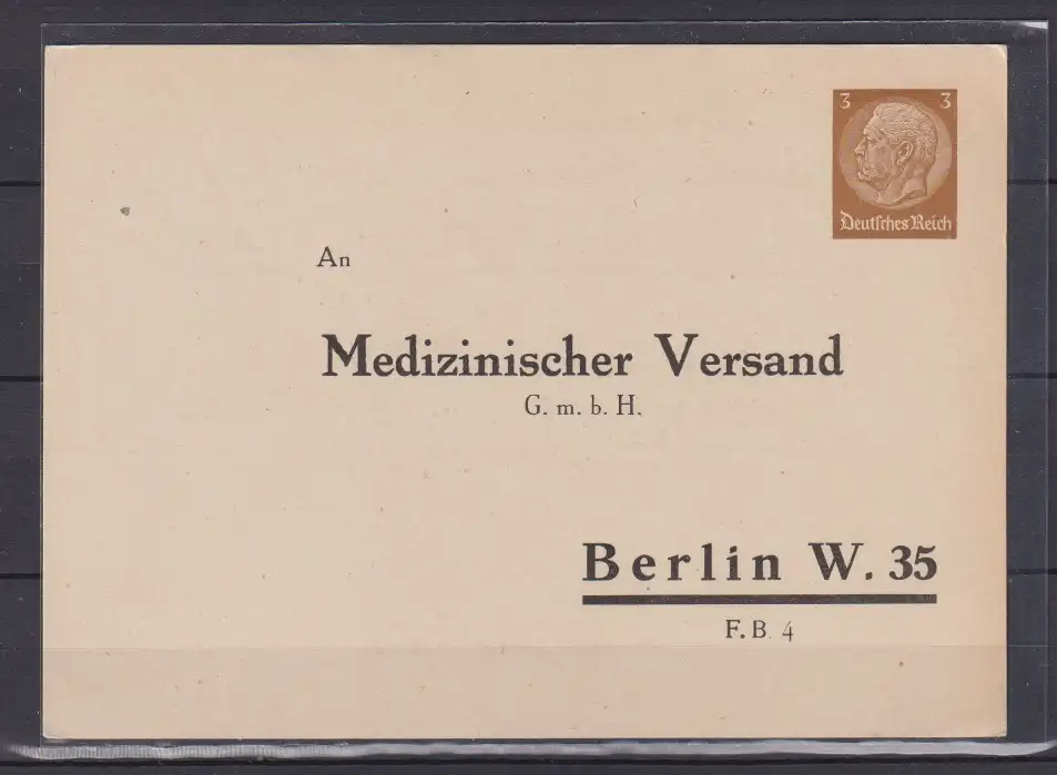 Dt.Reich Privatganzsache "An Medizinischer Dienst GmbH Berlin W 35-Haemasal - Bestellkarte "