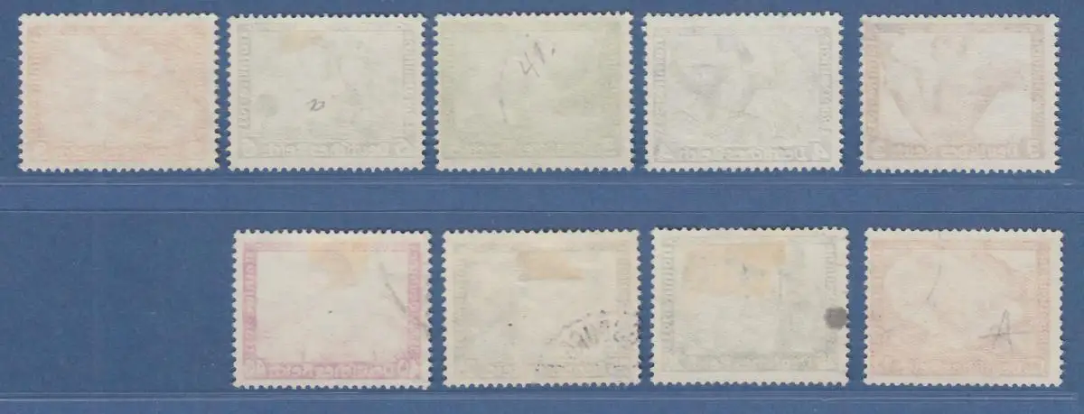 Originalmarken in guter Erhaltung, mit zumeist zarten, das Motiv nicht zu sehr störenden Abstempelungen. Alle Werte in A-Zähnung !