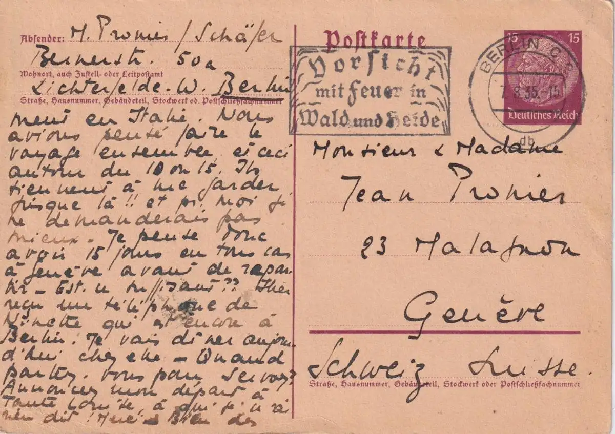 gestempelt Berlin C.2 (Werbeflagge "Vorsicht mit Feuer in Wald und Heide") nach Genf