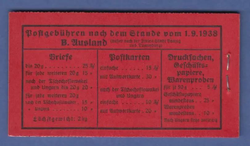 Deutsches Reich 1939 Hindenburg Markenheftchen MH 37.4 **