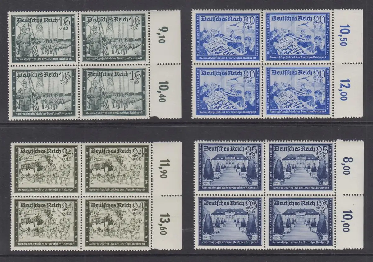 Deutsches Reich 1939 Kameradschaftsblock Mi-Nr. 702-13 kpl. Satz ** Viererblocks