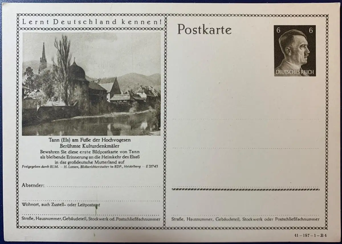 Bildpostkarte "Lernt Deutschland kennen!", Tann (Els), Ungelaufen, Druckvermerk 41-187-1-B4, sehr gute Erhaltung.