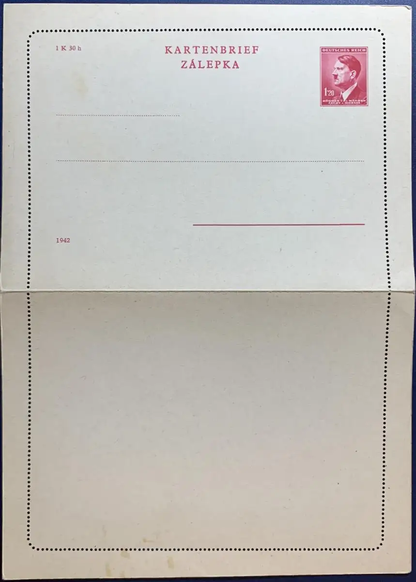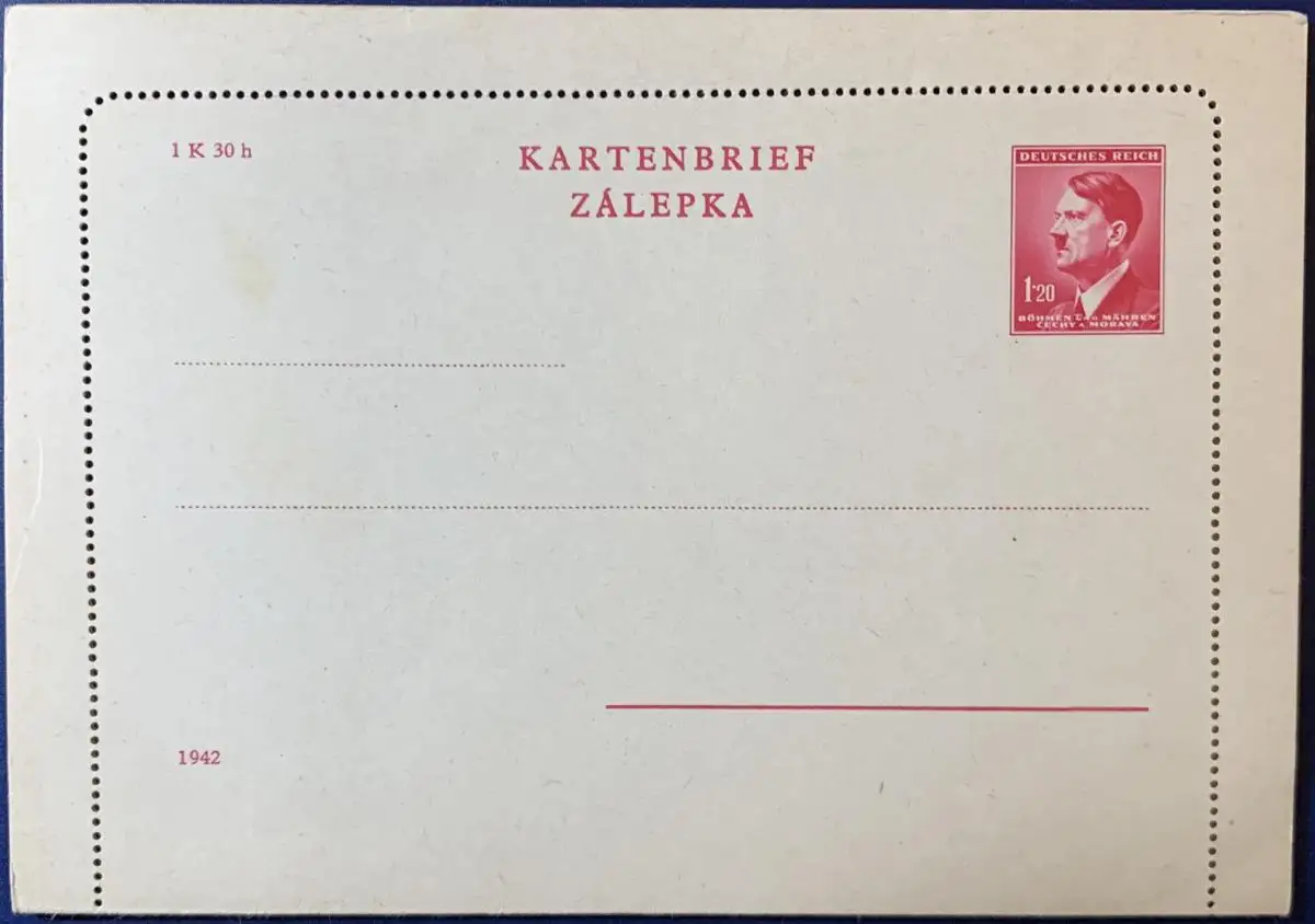 Ganzsache, Kartenbrief, Böhmen und Mähren, 1942