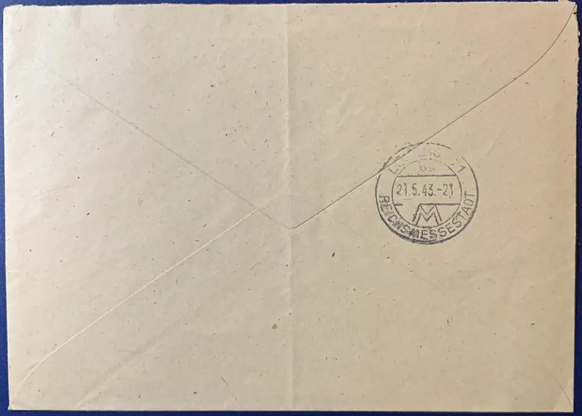 Einschreiben, frankiert mit Michel.Nr. 842 (Oberrandstück!), gelaufen mit Poststempel vom 21.05.1943 von Borna nach Leipzig.