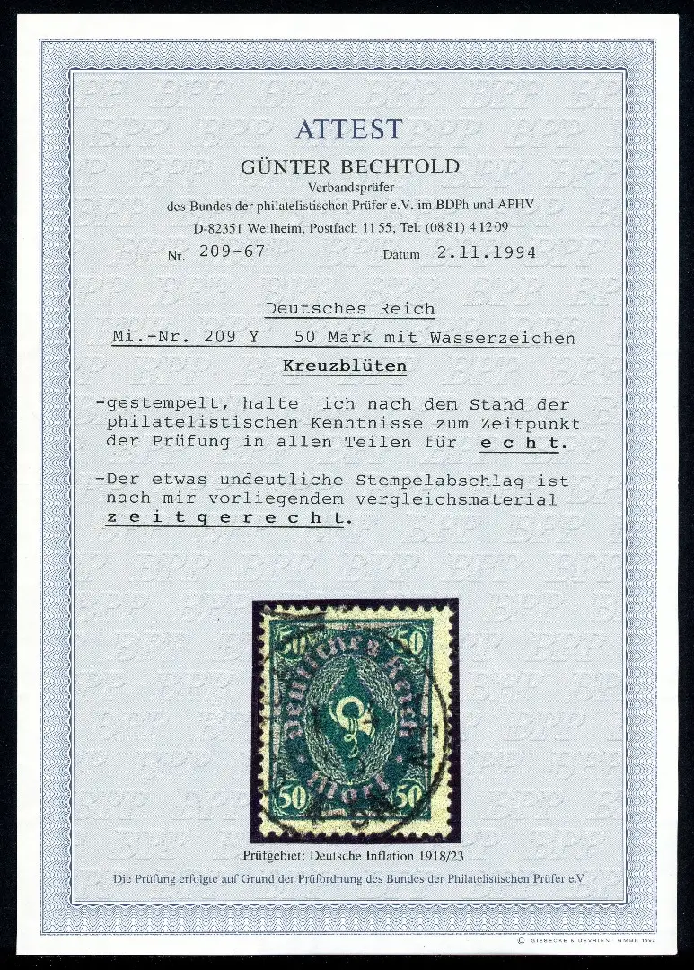 Deutsches Reich 209 P Y gestempelt Fotoattest Bechtold #GJ271
