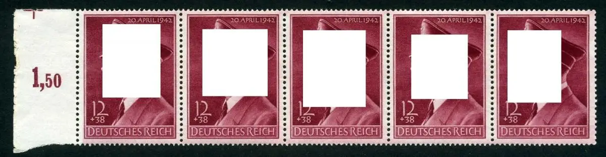 Deutsches Reich 813 y postfrisch waag. 5er Streifen #HS041