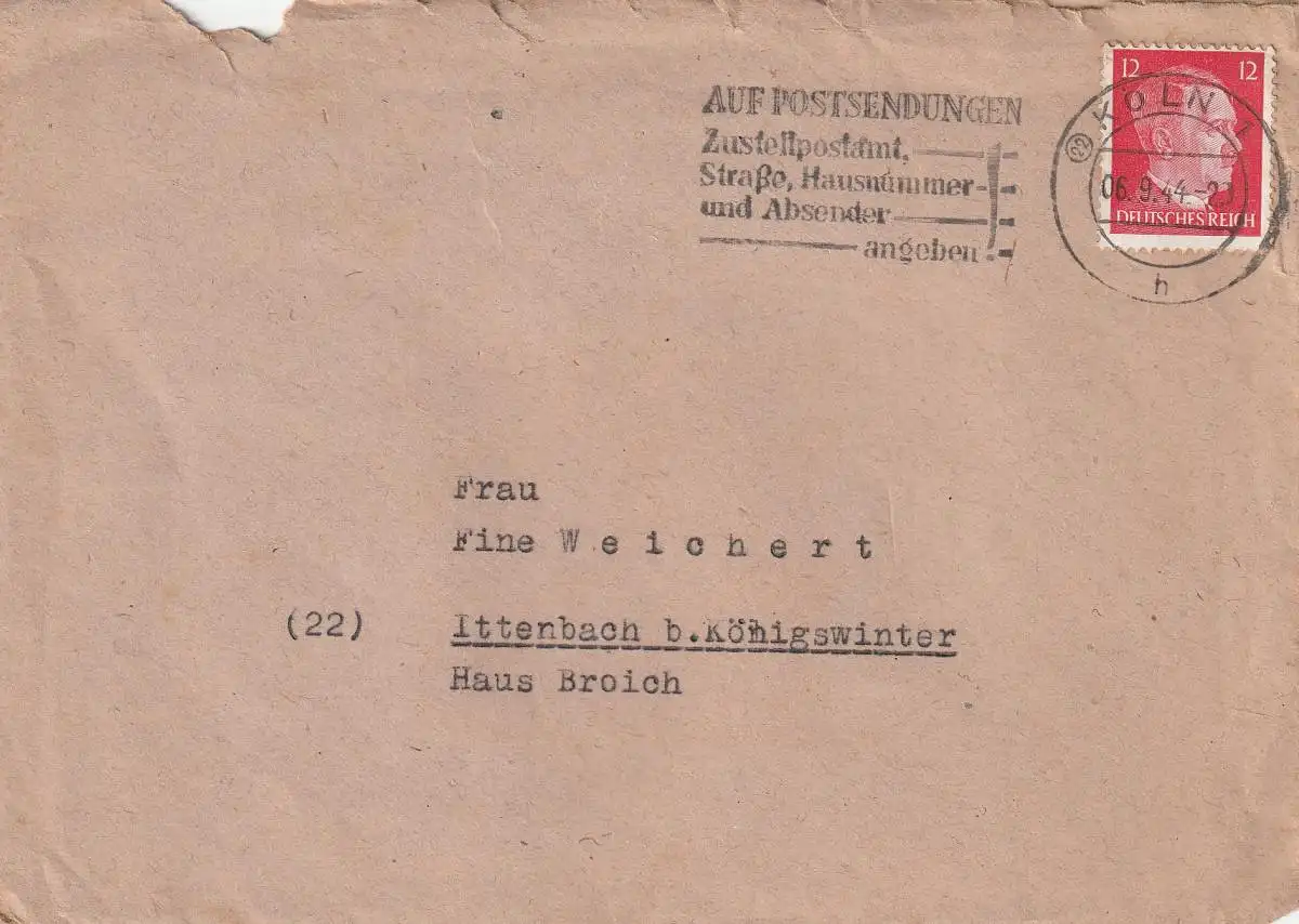 5000 KÖLN, Postgeschichte, PLZ 22, 1944, Maschinenwerbestempel