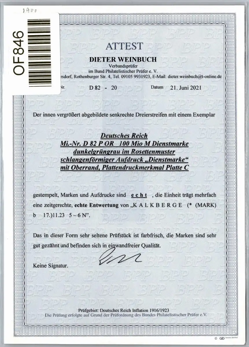 Deutsches Reich D 82 (3x) P OR postfrisch Attest Weinbuch #OF846