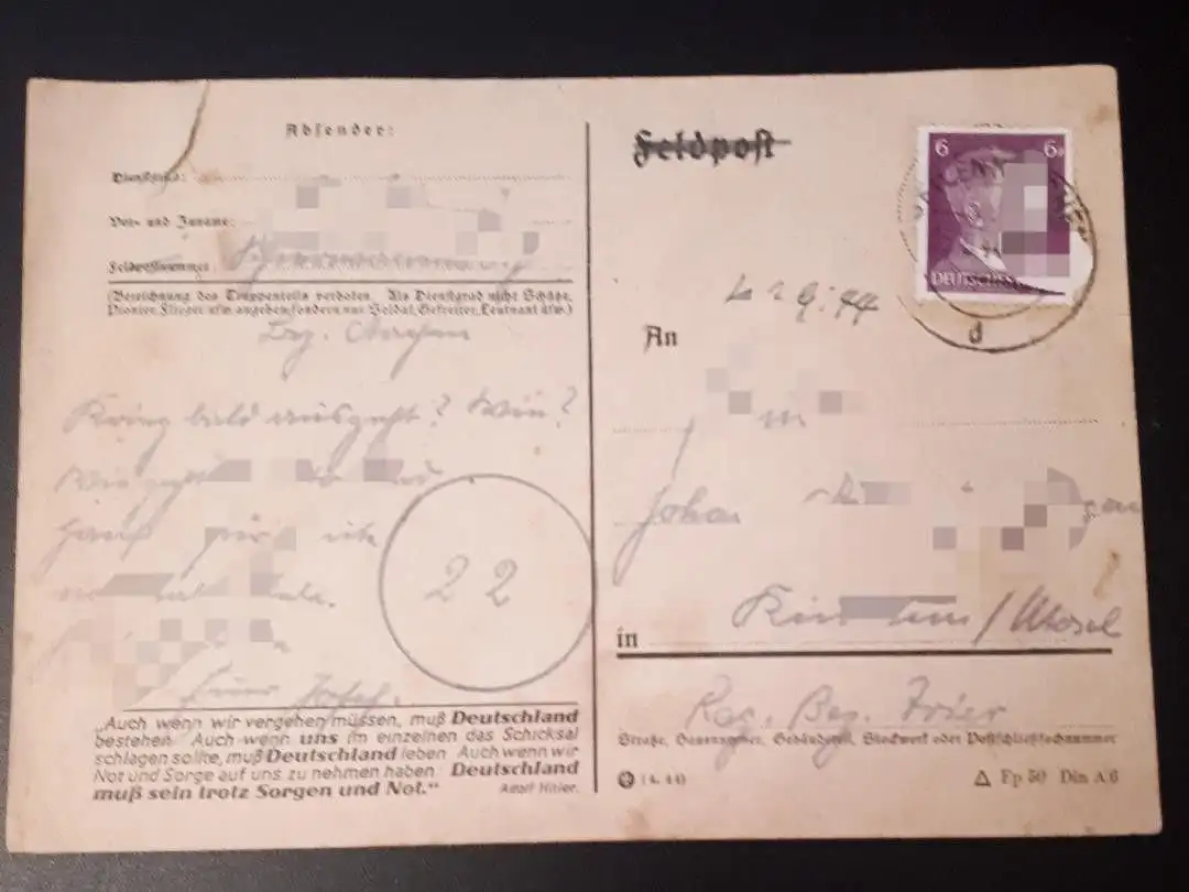 Deutsches Reich Feldpostkarte 1944 entwertet