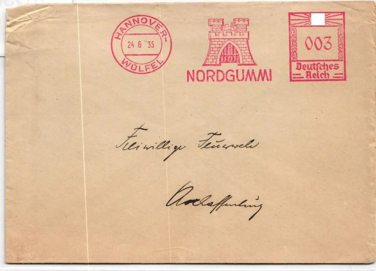 Deutsches Reich Freistempler auf Brief Nordgummi #KQ309