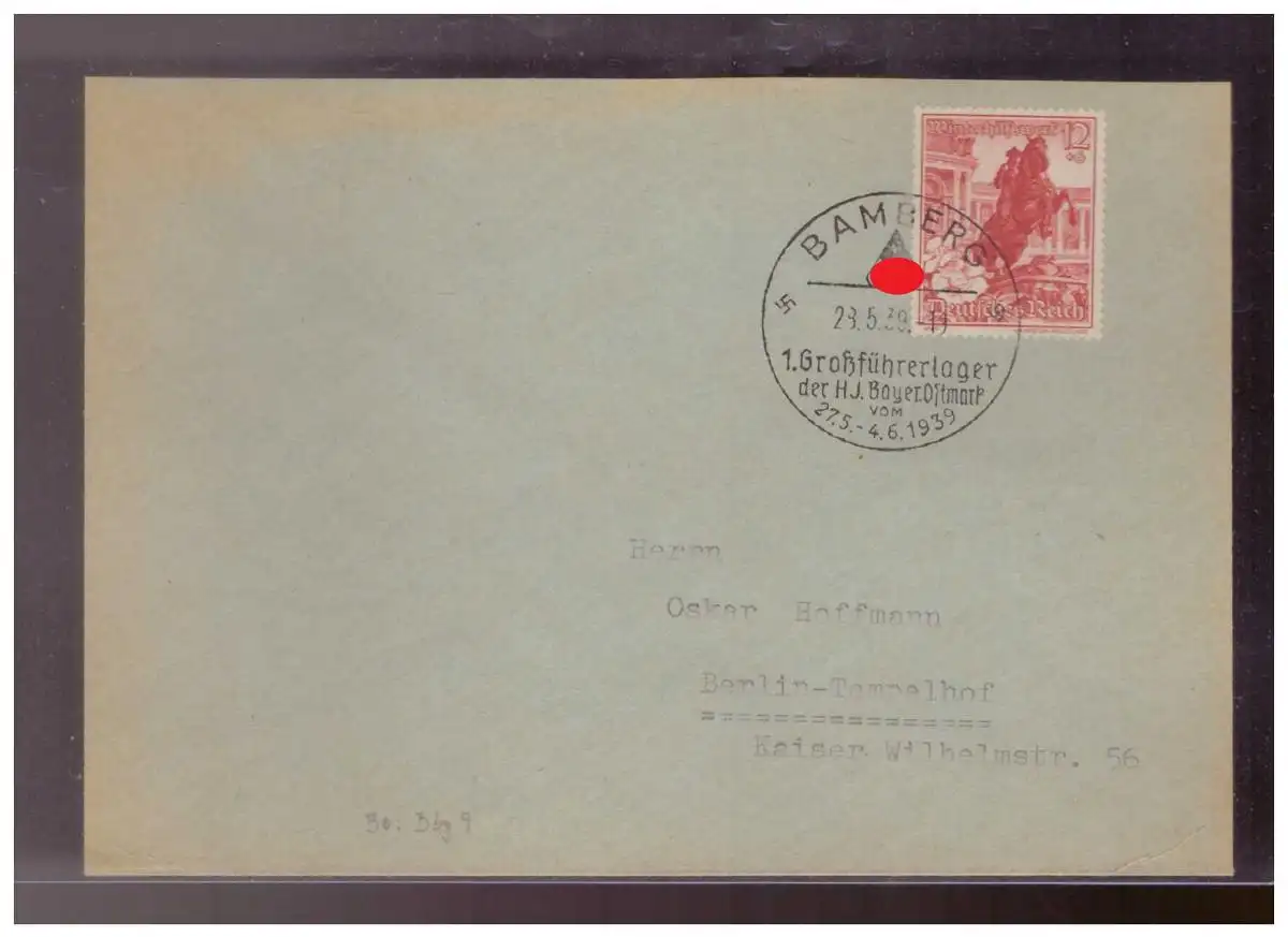 Dt- Reich (024372) Brief mit Propagandastempel HJ (Hitlerjugend) Bamberg 1.Großführerlager der HJ Bayerostmark 29.5.1939