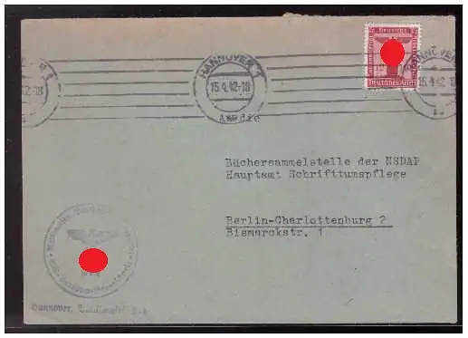 Dt- Reich (008602) Dienstbrief NSDAP Gau Hannover- Braunschweig, gelaufen Hannover am 15.4.1942