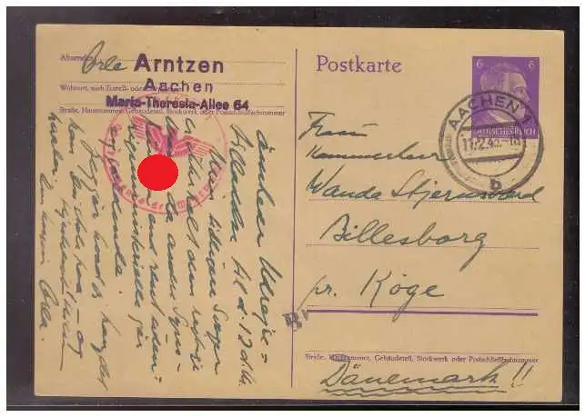 Dt- Reich (009038) Ganzsache P299I gelaufen zum "Europatarif" Unterfrankiert unbeanstandet befördert nach Dänemark 1943
