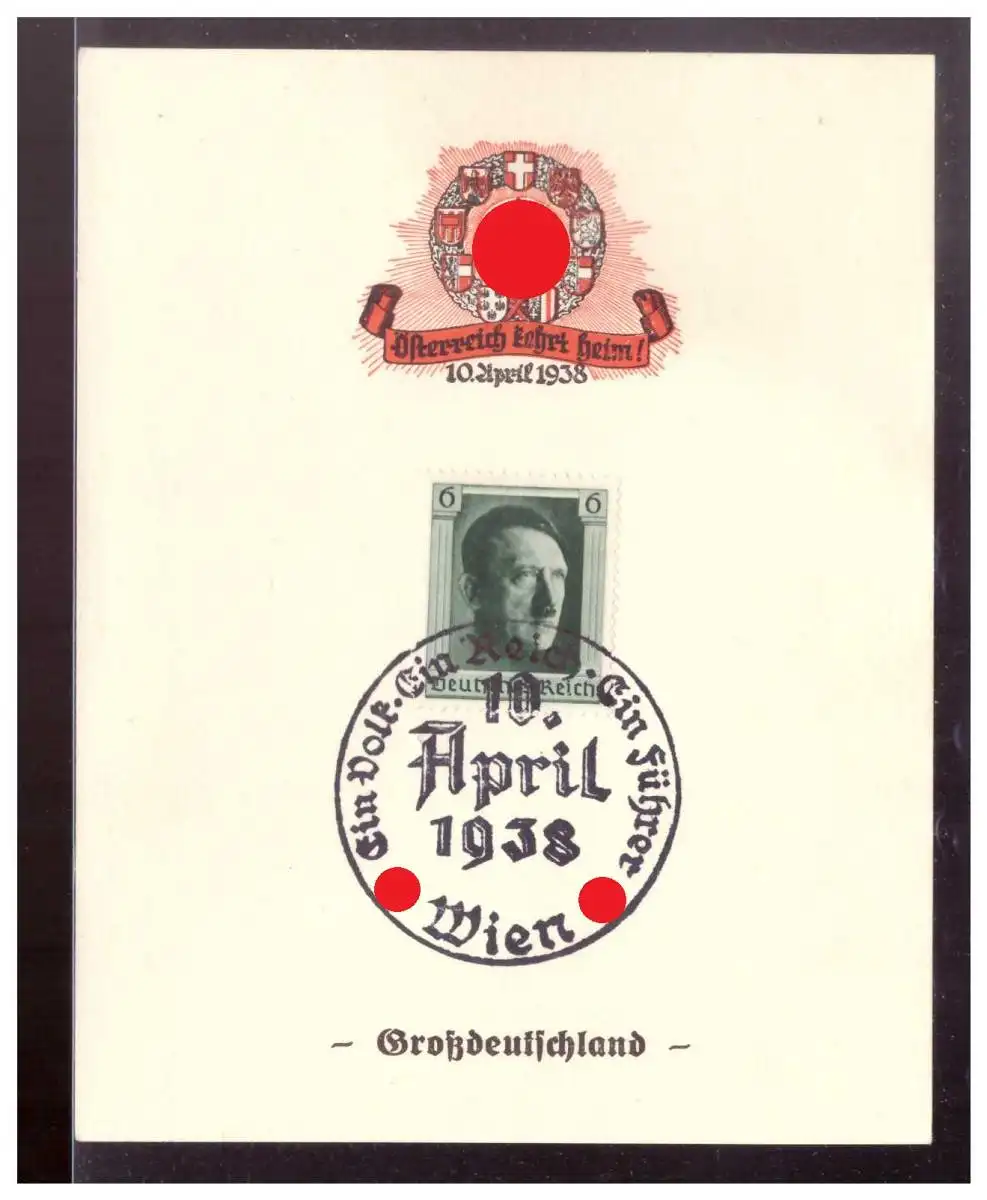Dt.- Reich (020108) Propaganda Gedenkblatt, Österreich kehrt heim, Großdeutschland, gestempelt mit SST Wien 10.4.1938