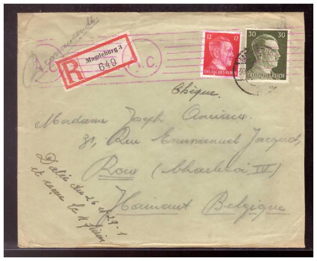 Dt- Reich (020253) Einschreiben Ausland- Magdeburg mit Maschinen-Zensur Stempel A.c. gelaufen nach Belgien 1944