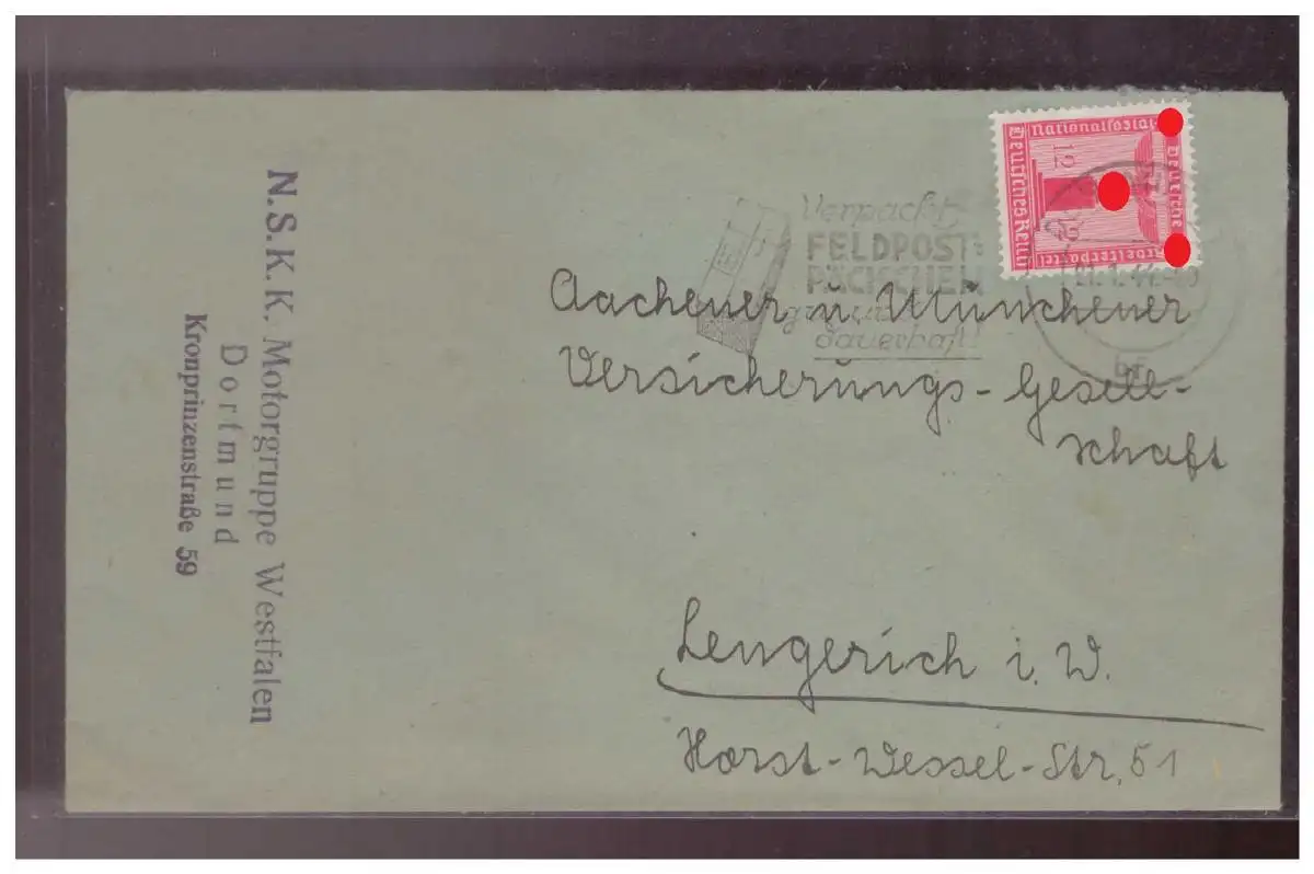 Dt- Reich (024539) Propaganda Dienstbrief mit Stempel NSKK Motorgruppe Westfahlen Dortmund, gel Dortmund 21.1.1944