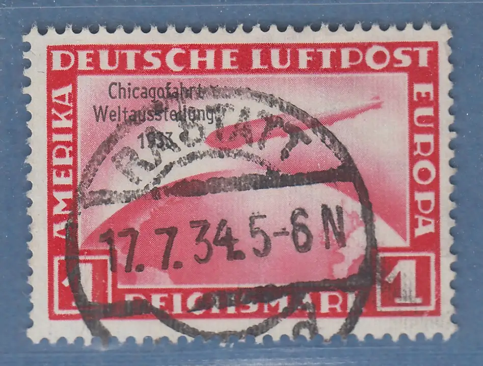 Deutsches Reich Zeppelin-Chicagofahrt 1RM Mi.-Nr. 496 mit Voll-O RASTATT