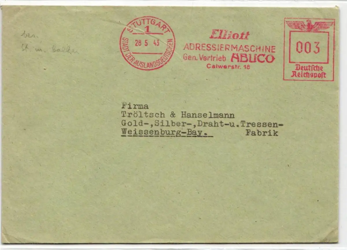 Freistempler Arbeitswelt von Elliot - Adressiermaschine, Gen. Vertrieb Ablico - Stuttgart.