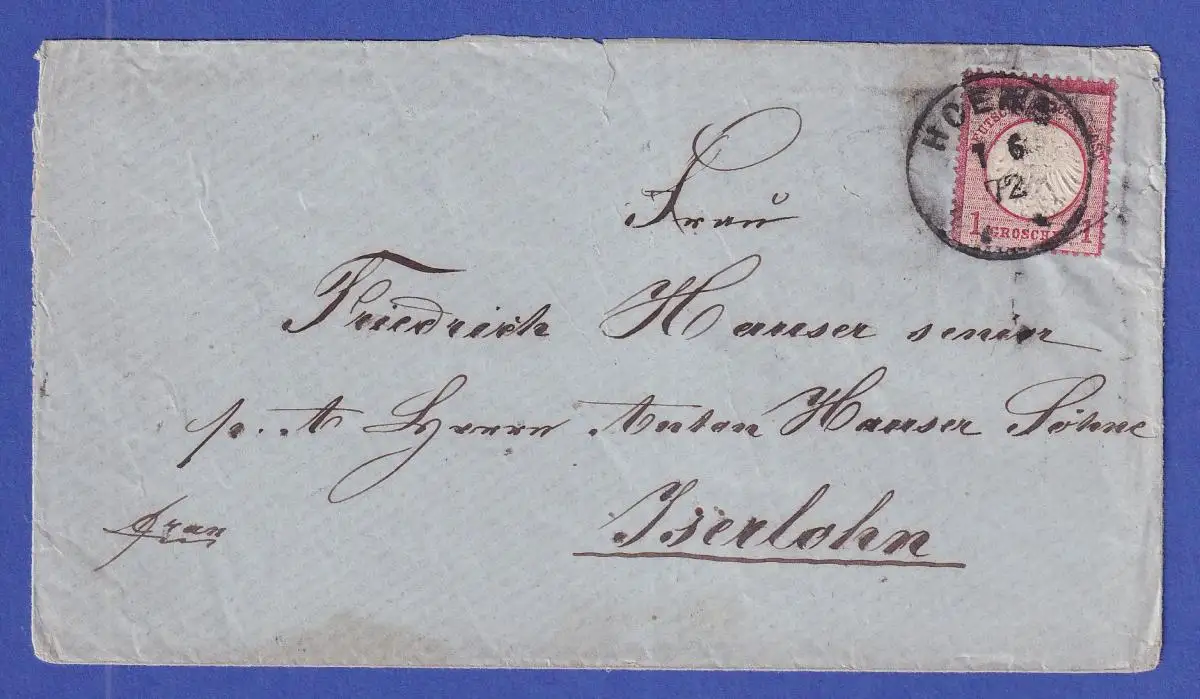 Deutsches Reich kl. Brustschild 1 Groschen Mi.-Nr. 4 auf Brief aus HOEHR