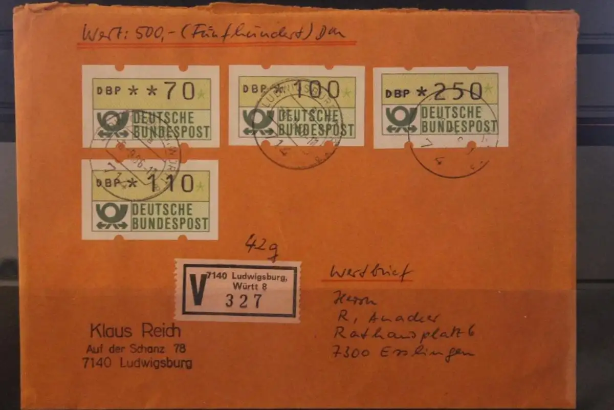 Deutschland 1986, Wertbrief mit ATM 1; portogerecht