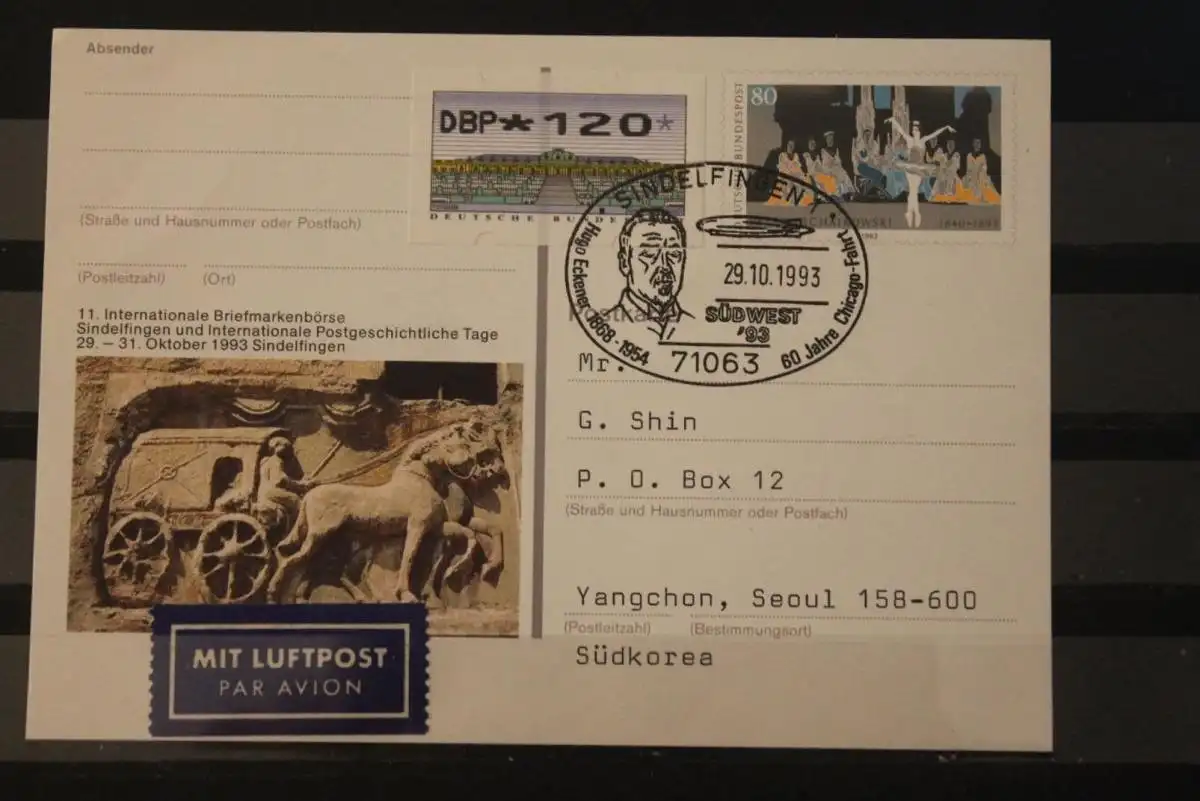 Deutschland 1993; ATM 120 Pf. SST Südwest '93 nach Korea