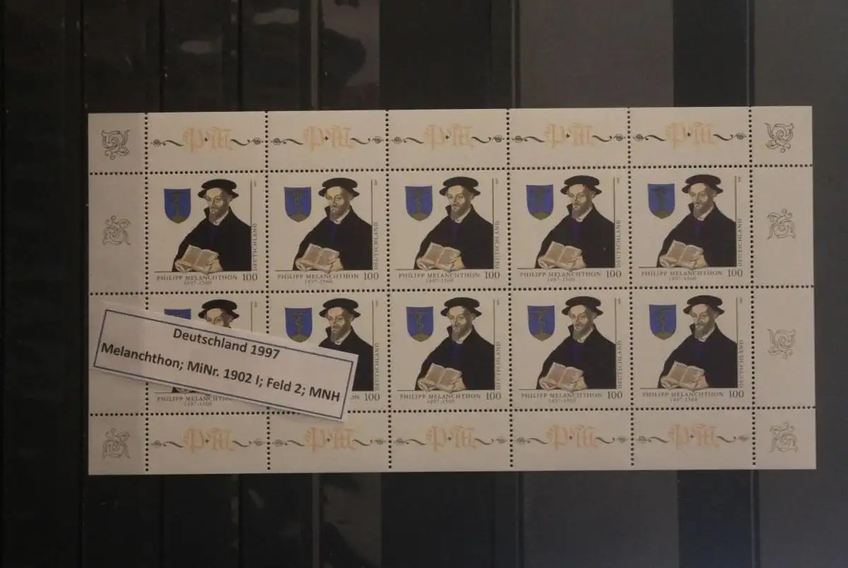 Deutschland 1997; Melanchthon; Zehnerbogen der MiNr. 1902; MNH mit Plattenfehler PF I; Feld 2