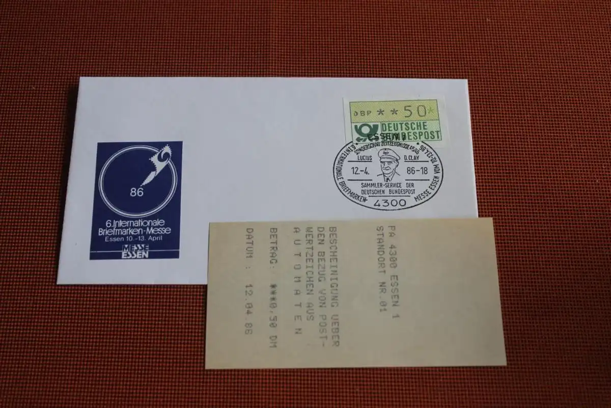 Deutschland ATM; Intern. Messe Essen 1986, Brief mit Quittung und Vignette