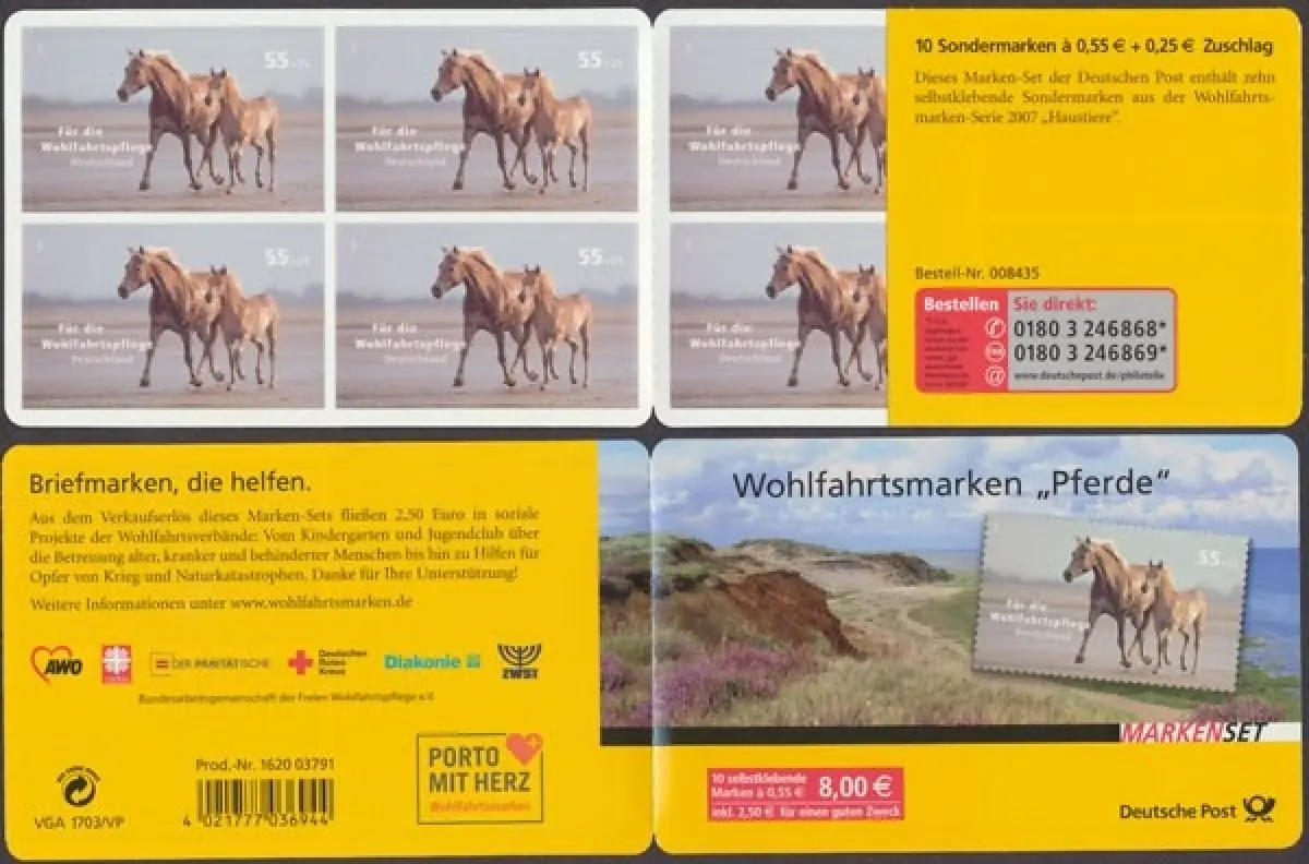 Wohlfahrtsmarken Haustiere: "Pferde", 2007, Markenheftchen.