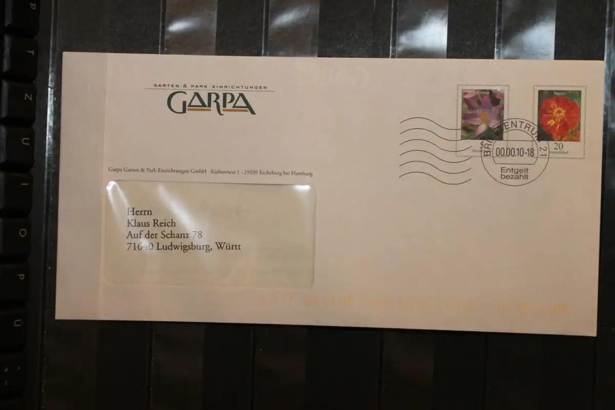 Deutschland, Ganzsache Garpa: Wertstempel: 5 C, 20 C, Blumenserie, Entgelt bezahlt, 2010