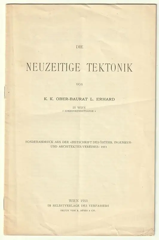 Bemerkungen: Beigabe: ERHARD, L. Die neuzeitige Tektonik. Wien, Selbstvlg. 1911. Sonderabdruck aus der Zeitschrift des österr. Ingenieur- und Architekten-Vereines. gr.-8°. 22 S. Mit 7 Abb. Ogeh.